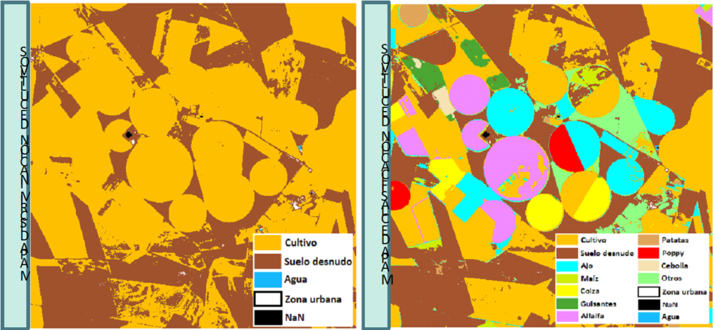 - Monitoring crop discrimination and classification of different agricultural areas over Barrax (Albacete) and mainly over Moncada (Valencia).